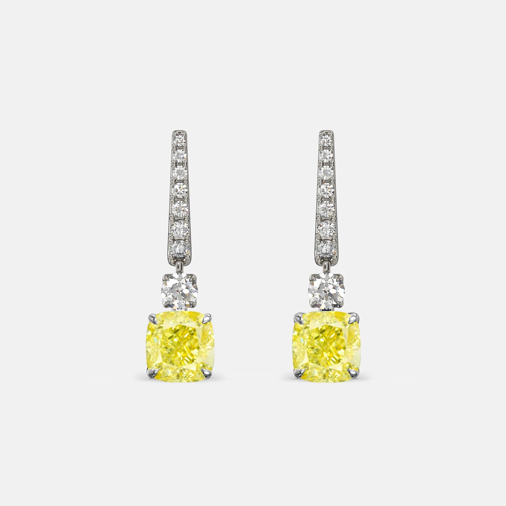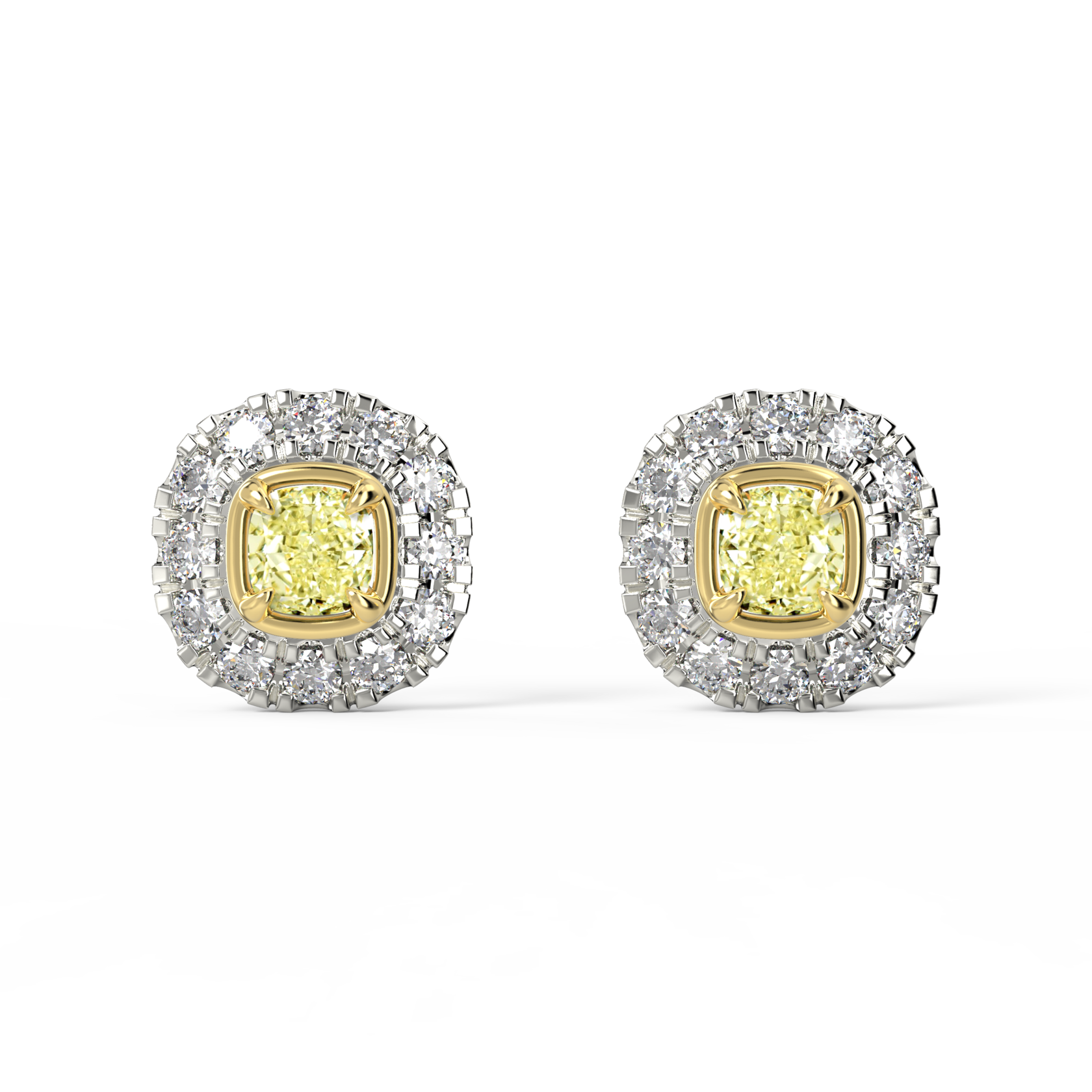 У желтых бриллиантов категории Fancy есть несколько степеней насыщенности : Light, normal ( в сертификате просто Fancy yellow), intense и vivid. Очень гармонично всегда смотрятся украшения из 2х цветов золота - белого и желтого. К примеру в пусетах August мы укутали главные камни в желтое золото, а ауру сделали из белого, это добавляет особой легкости и превращает их в настоящие сверкающие звезды на Вашем теле.